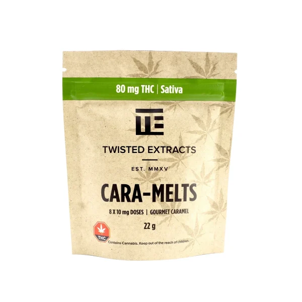Twisted Extracts Cara-Melts are gourmet, buttery caramels crafted for consistent dosing and a smooth, dessert-like experience. Each pouch includes eight individually wrapped pieces at 10 mg each (80 mg total). Choose THC Sativa for a brighter daytime vibe, THC Indica for cozy evening calm, or CBD (no THC) for clear-headed balance. Prefer non-edible formats sometimes? Explore our broader CBD collection, keep a precise tincture handy with measured THC oils, or browse clean, smooth CBD oils.